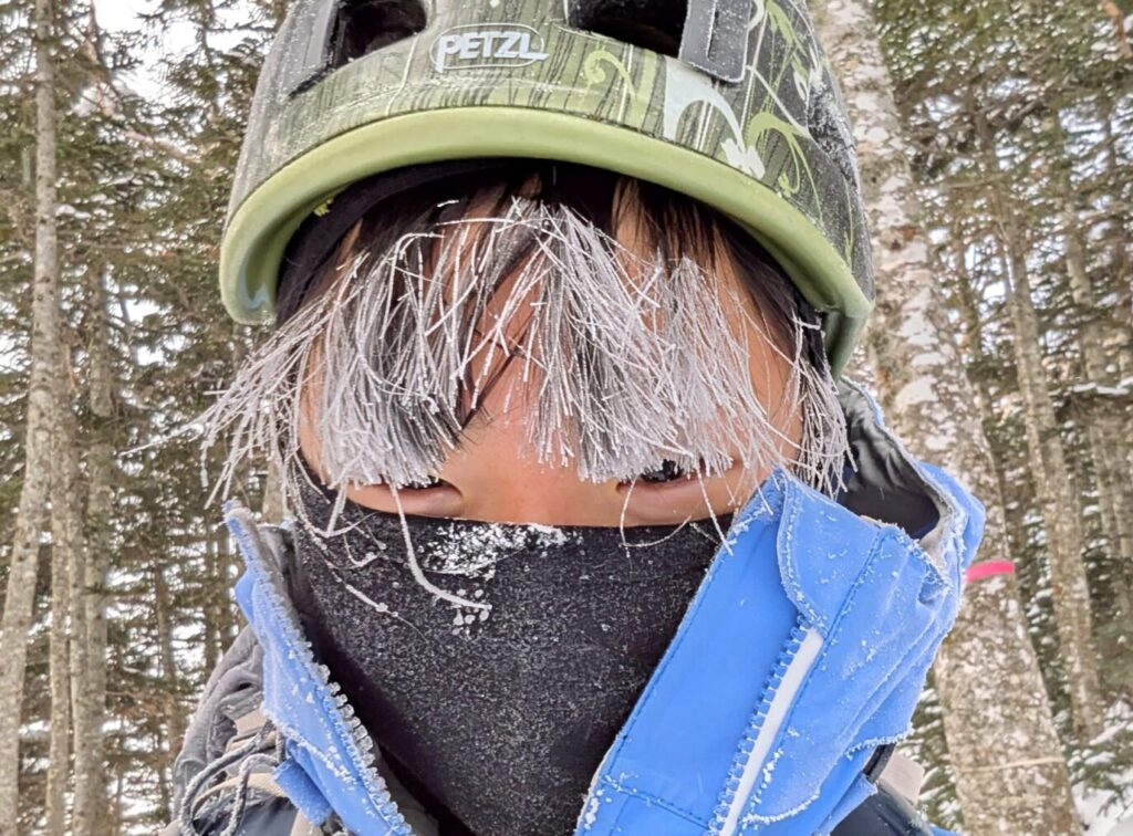 途中、振り返ったTさんに「樹氷になってるよ笑」と言われなんのこっちゃと思いましたが、後からスマホカメラを鏡にして見ると前髪がバチバチに凍っていました。おもろい。