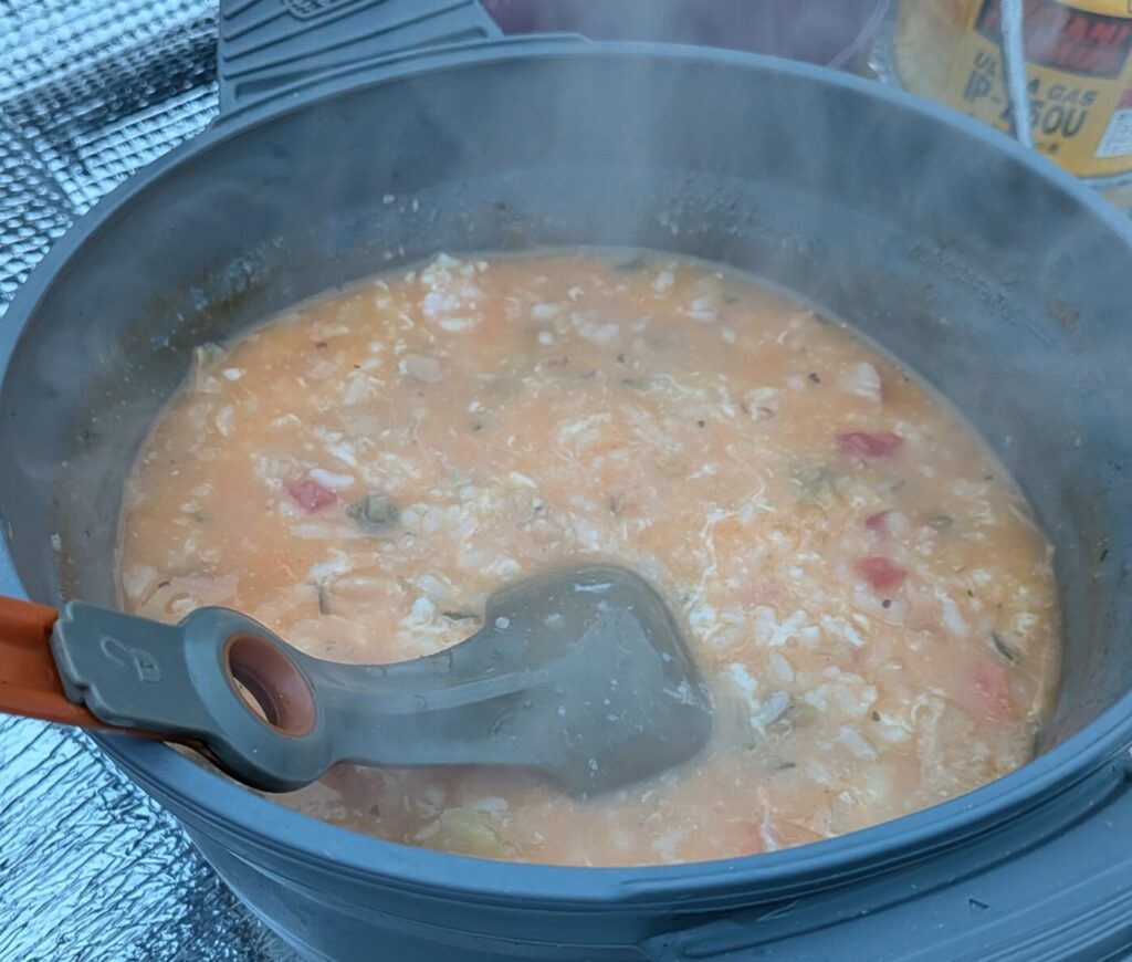 8:10 朝食のトマトチーズリゾット。毎度写真がイマイチですが、温かくて美味しいです。