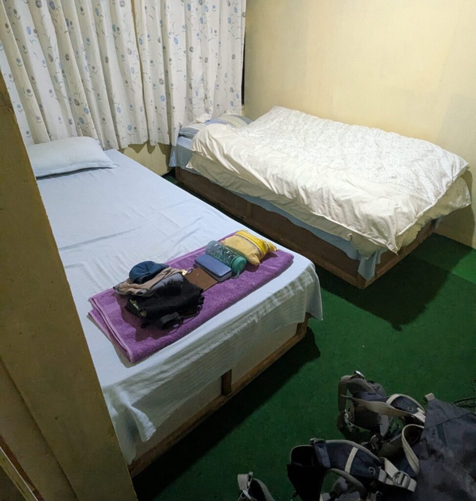 今回は空いていたのもあり、ガイドさんとは別々の部屋で、贅沢に布団2枚使わせていただきました。