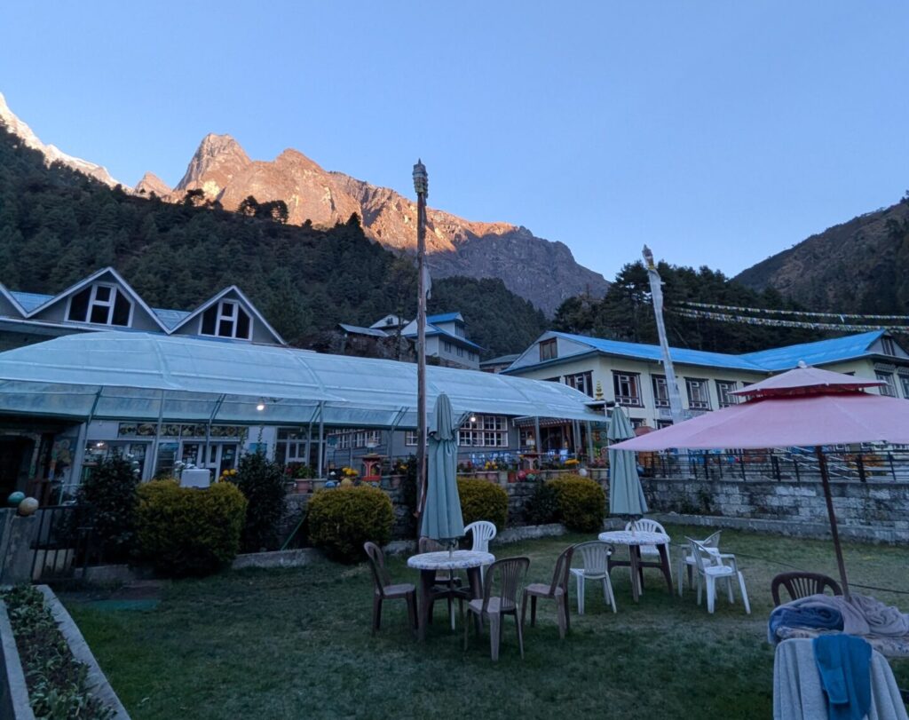 ここでエベレスト街道の電波事情についてお話しておくと、私はガイドさんのコネで4泊目のディンボチェまではWi-Fiを使わせてもらえましたが、本来有料です(多分500~1200ルピーくらい)。ただディンボチェまでは普通に電波が入るので、日本でsimカードを買っていけば使えるはずです。拍子抜けするくらい文明があるんですよ、エベレスト街道。