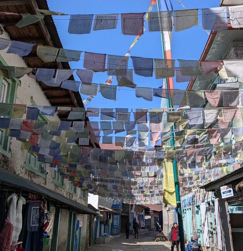 ネパールの風景を象徴するようなこの旗は「タルチョ」。チベット仏教に由来するもので、トレッキング中至る所で見かけました。