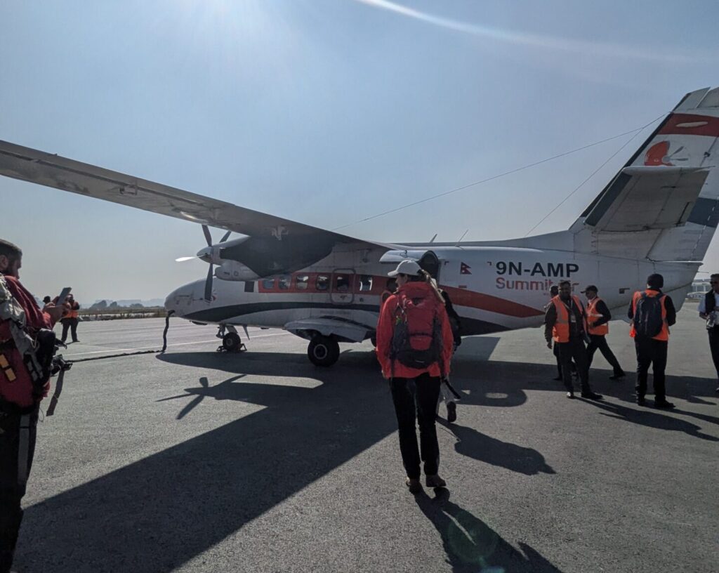 10:30 ようやく小型の飛行機に乗れました。この日ルクラにとんだ飛行機は全部で3便。私たちと同じ便に乗ったのは、確か10人弱だったと思います。