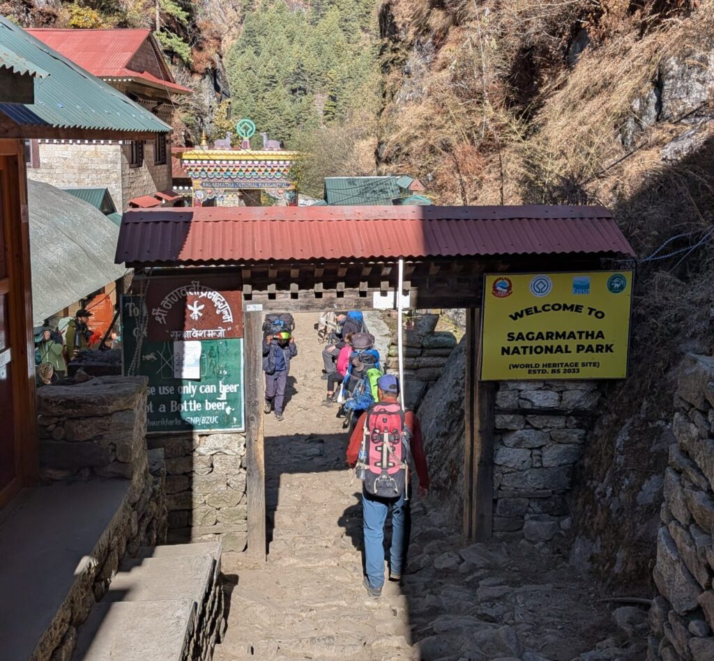 9:40 さらに1時間歩き、モンジョを抜けてすぐのところにあるのがサガルマータ国立公園の入場ゲート。ここで入園料として3000ルピー支払います。