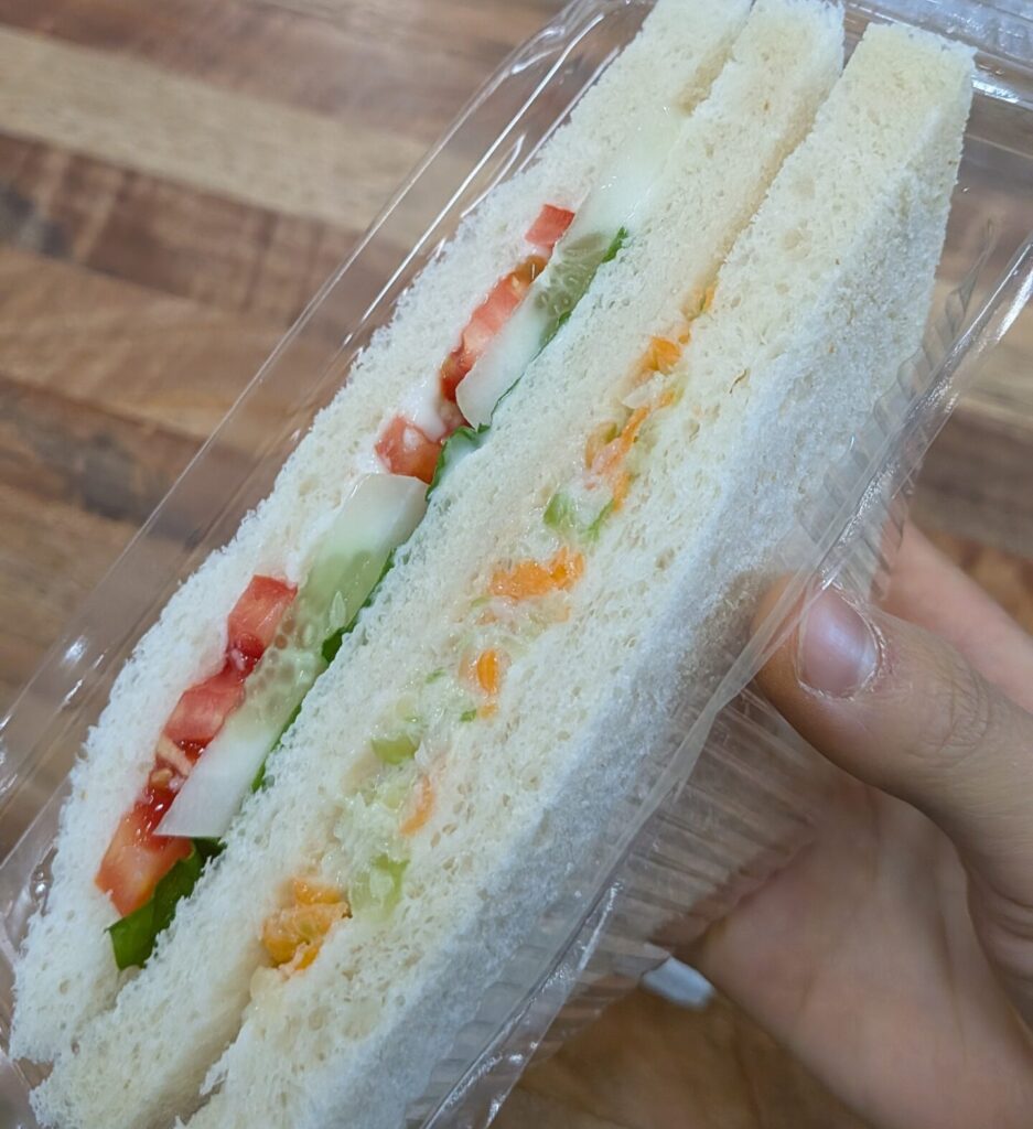 飛行場の混雑のため、搭乗予定の飛行機がなかなか飛べず。待ち時間に空港でサンドイッチを買って朝食に代え、さらに待つこと3時間。