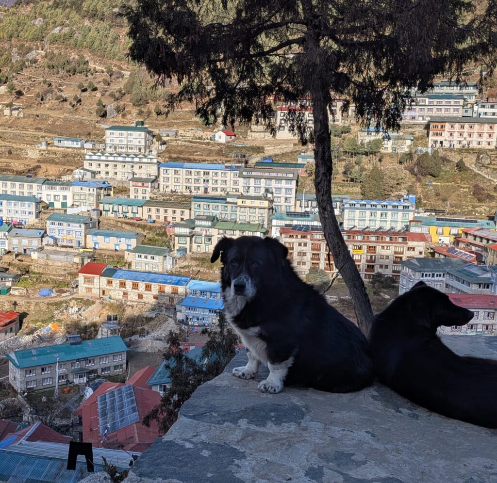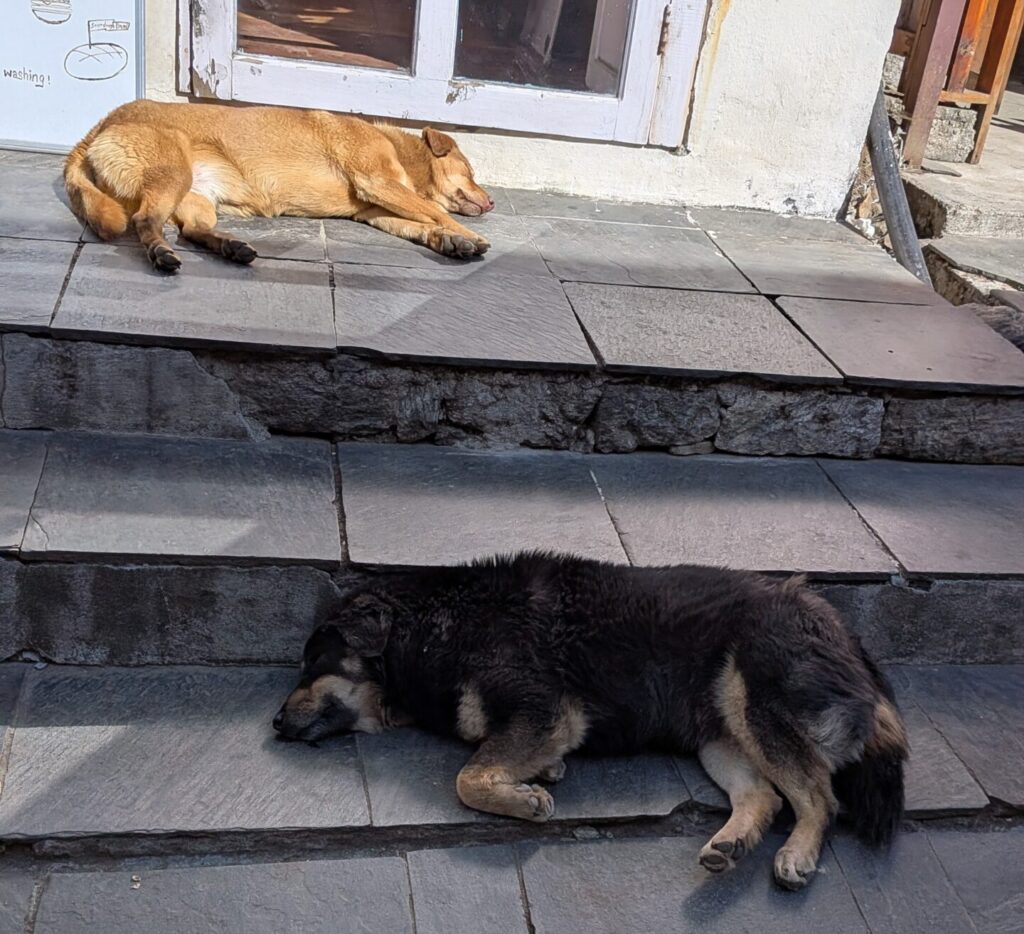 少し高いところ、ナムチェの街並みを見下ろせる場所で寛ぐ野良犬。どこまで行っても野良犬はいます。