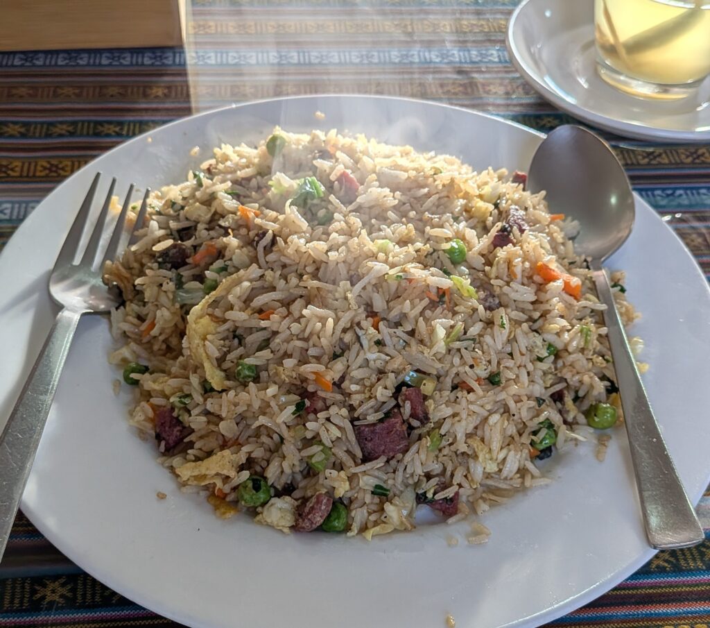 12:50 とりあえずお昼ご飯、ということでフライドライスを注文。つまりは炒飯です。これもかなり気に入った料理。パラパラのバスマティライスは日本の米以上に炒飯に合っている気がします。