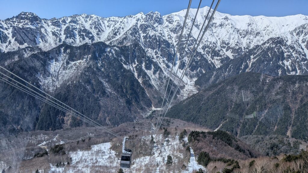 ロープウェイから見える景色。一番大きく見えるのは笠ヶ岳です。