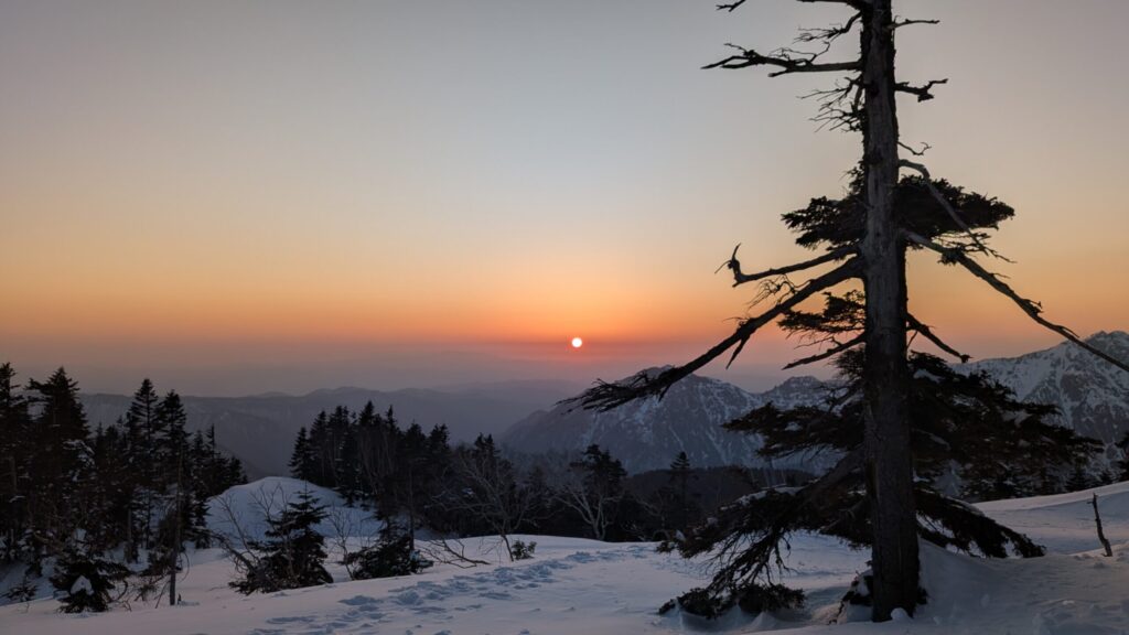 独標までなら日帰りでも行きやすいところですが、雪山で夕日と朝日を見たい、ということと、雪山ソロテント泊デビューもしたかったので、西穂山荘で1泊するゆったりプランです。