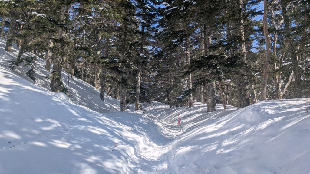 西穂独標の標高は2,701Mですが、2,156M地点までロープウェイで登れるうえ、2,367M地点には通年営業の西穂山荘があるので、雪山初心者にも人気の山です。初心者たる私がソロで行くにもピッタリの環境でした。