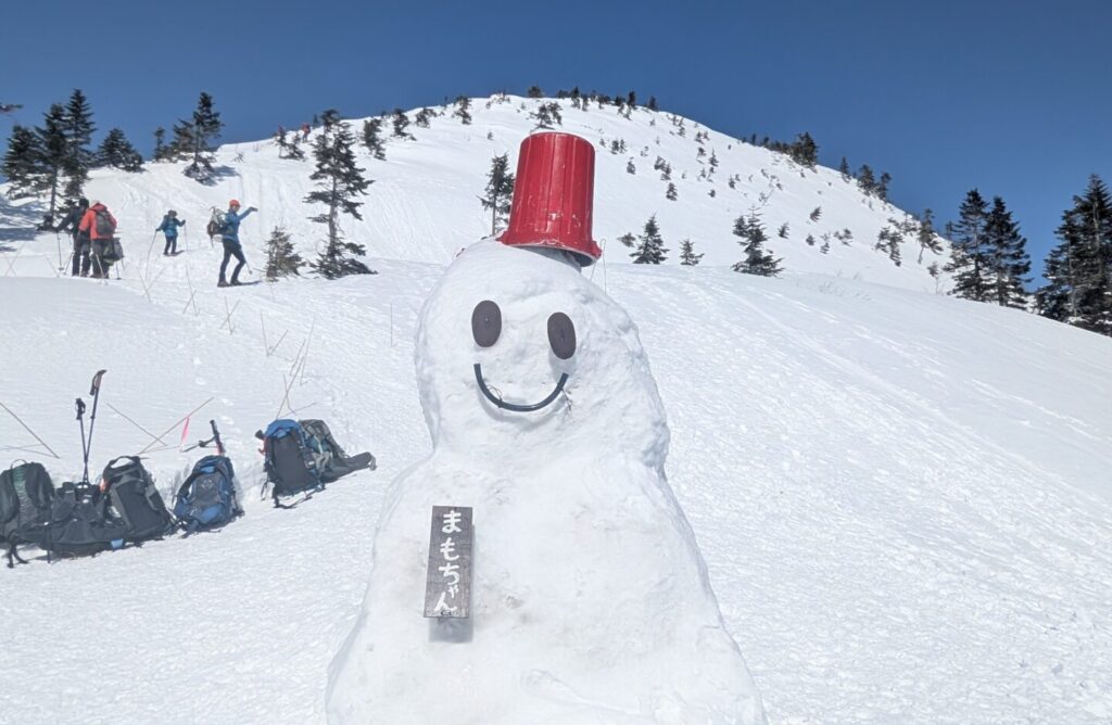 小屋前の雪だるま、「まもちゃん」。有名なやつです。